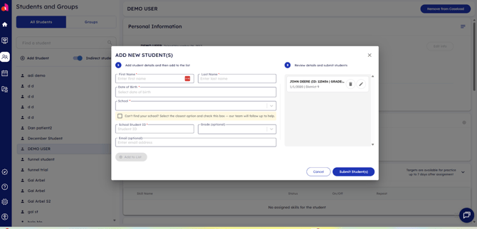 4. This opens the Add New Student(s) screen. Enter the student information, including: