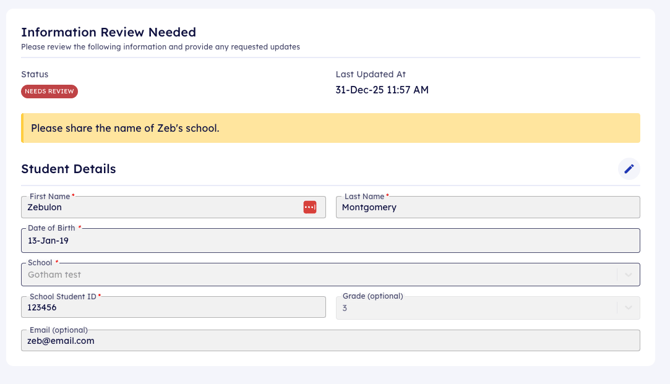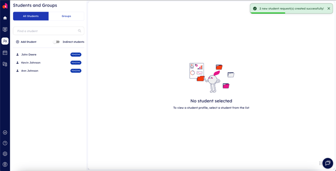5. When you're ready, select Submit Student(s). You’ll see a confirmation message letting you know the request was received.