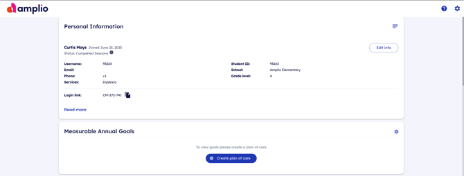 Select a student's Full Name to open their individual profile. The student profile view matches the profile that interventionists see, and includes: