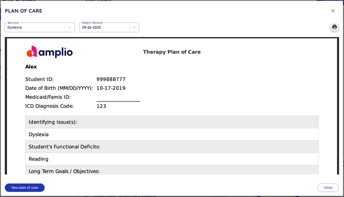 • Student name, date of birth, student ID, school, grade, gender, ICD code, and Medicaid number