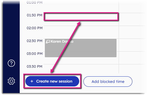 1. On the calendar, either select the desired block of time or select the Create new session button.
